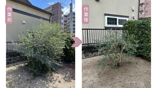 作業前写真の左端にあるのは高さ2mのオリーブです。